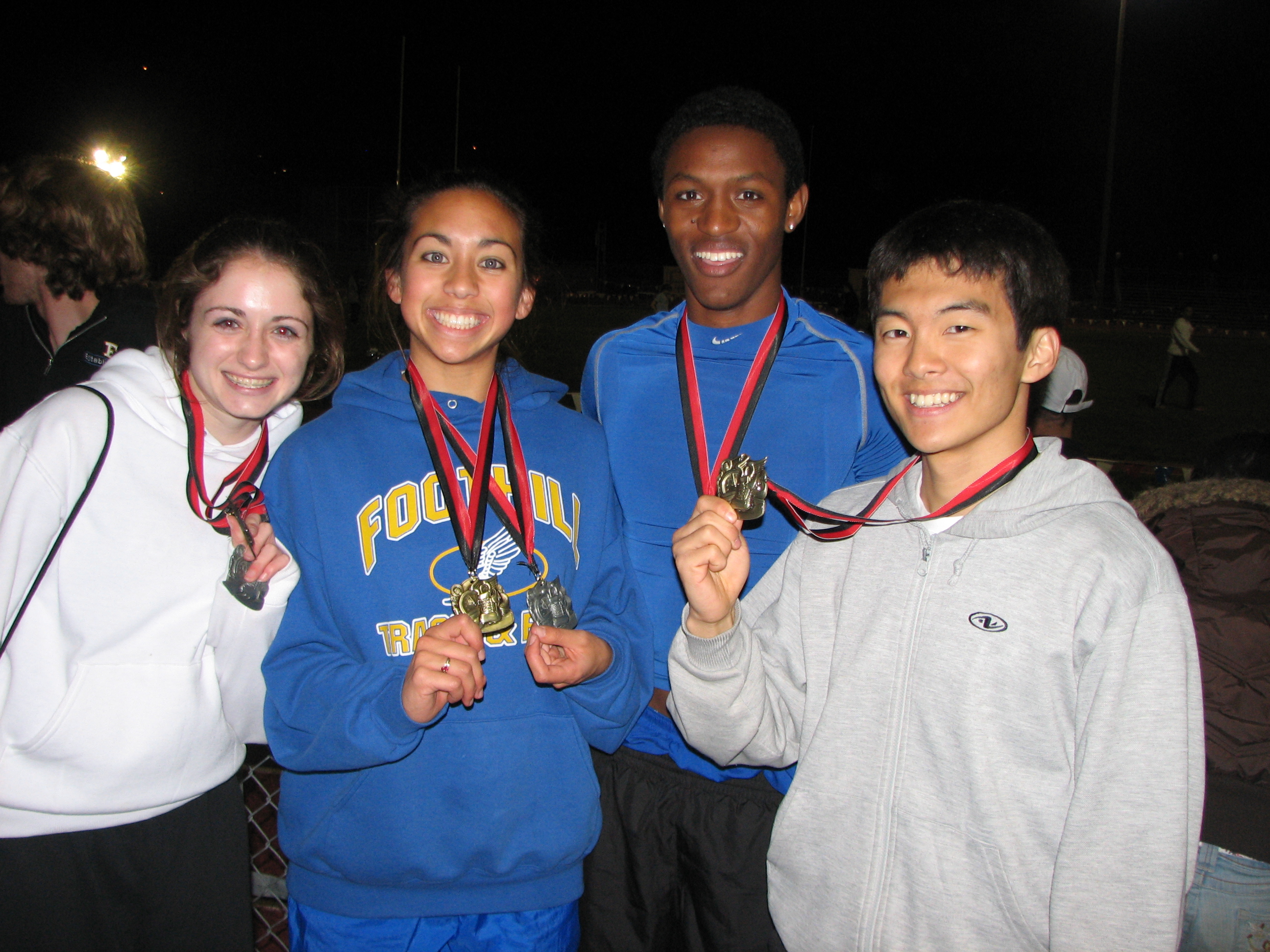 March 8, 2008 With 13 teams traveling to the North Bay for the first meet of the 2008 season, Foothill should be extremely proud of the showing put forth by those athletes in attendance! From first year rookies to multi-year runners, Foothill had a very impressive showing in San Rafael. The team was led by the sprint relay teams, as the Foothill A team took second in the girls sprint medley in a very fast 1:51.85 (less than 2 second behind first place Skyline). The teams decided to exact a little revenge on the Skyline team, and the coed 4x200 relay team came out blazing, finishing in a speedy 1:40.35 to take first place away from Skyline. Great handoffs helped contribute to the win, as the team won by a narrow margin of just .11 seconds! Not to be outdone, the distance medley teams also held their own. In races that included distance favorites Skyline, Casa Grande, Gunn and Petaluma, the boys team A took fifth in 11:01.0., while the girls team A took 15th in 14:38.4. Team Results: Girls Sprint Medley Boys Sprint Medley Girls Distance Medley Boys Distance Medley Coed 4x200 Meter Relay Coed 4x800 Meter Relay Download results from the meet: .pdf | .doc